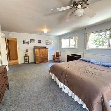 The main floor offers a comfortable primary bedroom and a full bath, while upstairs you'll find two expansive bedrooms with vaulted ceilings, generous natural light, and a full bath.
