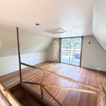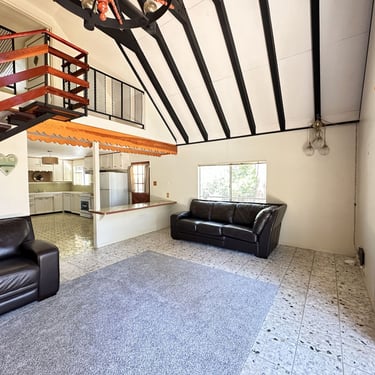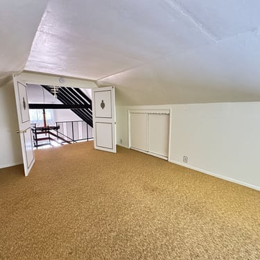 Stairs lead to an open loft-style bedroom, adding charm, natural light, and flexible sleeping space.