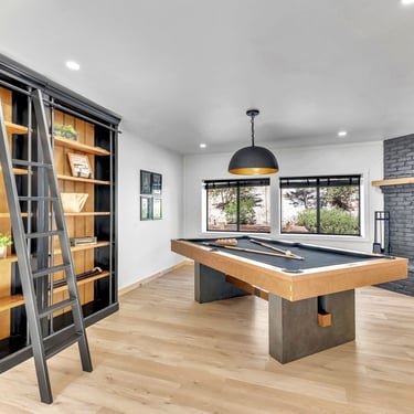 The 2-car garage is currently set up as a fun game room with a pool table-great for entertaining guests.