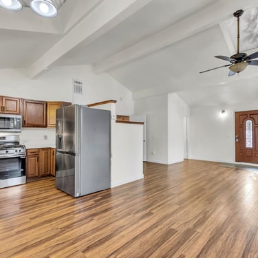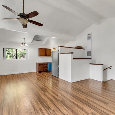 This charming two-story residence features 3 bedrooms / 2 bathrooms with a welcoming living room, an additional room just off the living area ideal for an office or den, and a dining room highlighted by a dramatic windowed ceiling that fills the space with natural light.