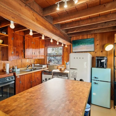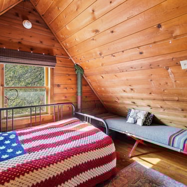 This 2-bedroom, 0.75-bath mountain cabin sits perched at the top of its 0.22-acre lot, offering an "above it all" feeling with peaceful treetop views and a true sense of privacy.