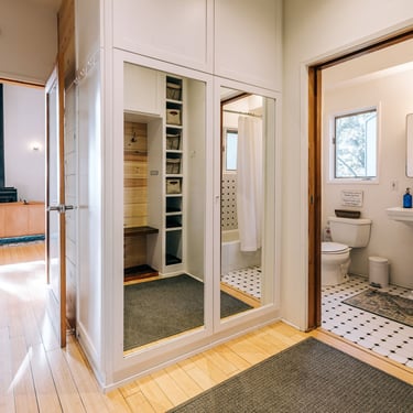 Upstairs, you'll find two comfortable bedrooms with good closets and surprising storage for a cabin of this size.