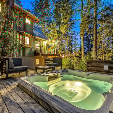 Mini splits provide efficient year-round comfort. Outside, unwind in the hot tub under the stars or gather with friends on the expansive deck.