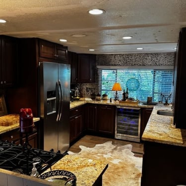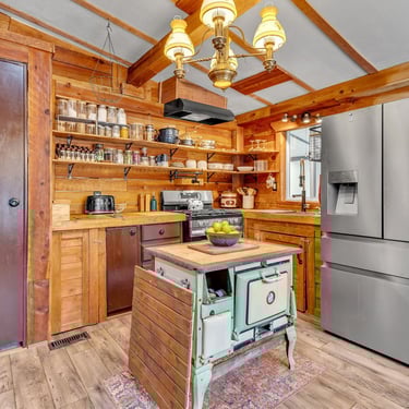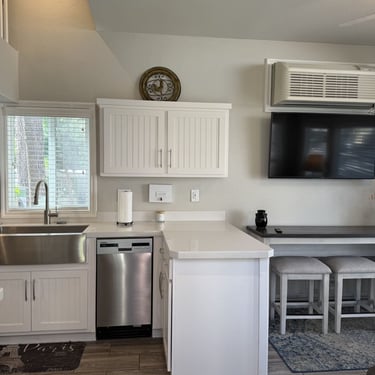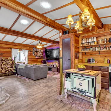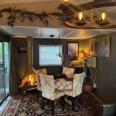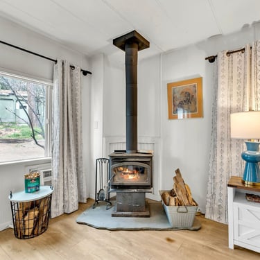 This inviting 2-bedroom, 1-bath home features a grand kitchen with modern appliances and all the bells and whistles, a spacious dining area with a cozy propane freestanding fireplace, and smart home upgrades including security cameras, a smart system, and automated lighting for comfort and peace of mind.